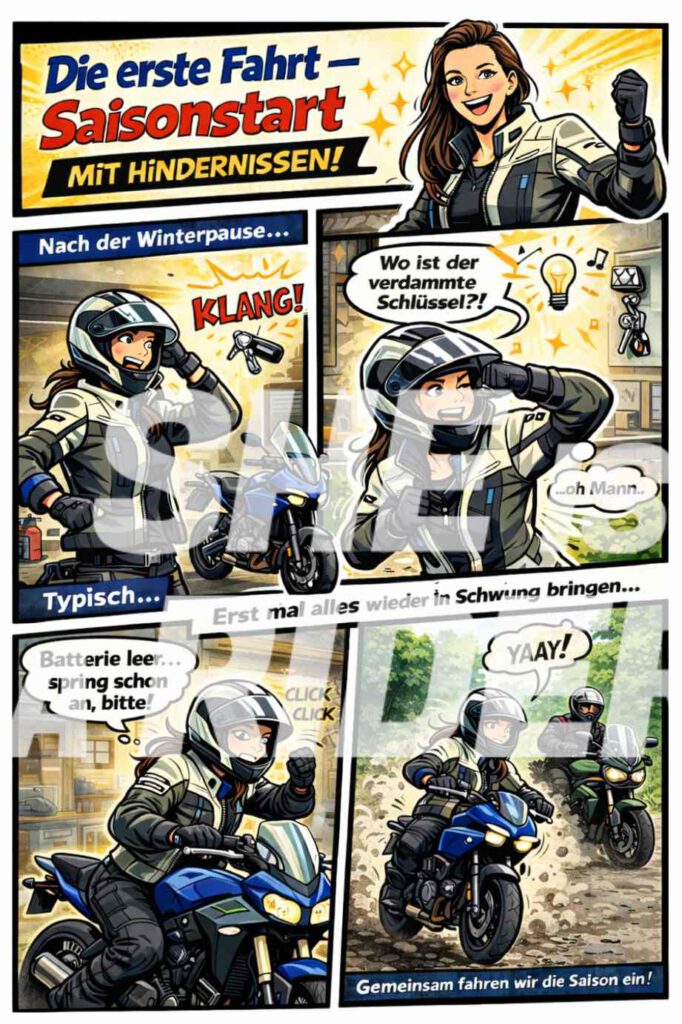 Warum jetzt die Motorradkolumne als Comic? Zur Unterhaltung aber auch wenn dich die Wintersaison, die Werkstatt oder ein gebrochenes Bein vom Fahren abhält – oder einfach nur so😉 Zum Lesen, schmunzeln und abschalten. Kollegin Claudia von SHE is a RIDER, sprudeln kreative Ideen heraus, die umgesetzt werden wollen.